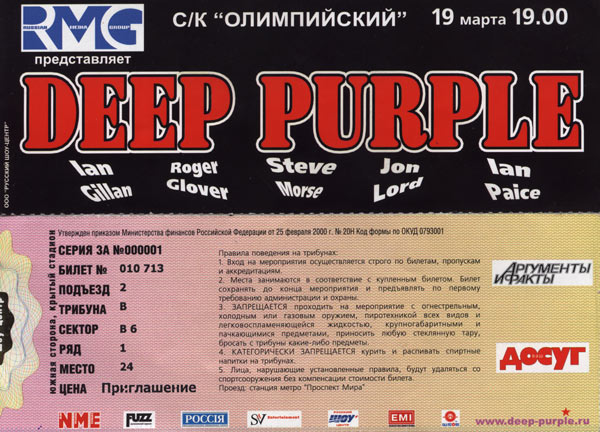 Напоследок, мне хотелось бы отметить следующее. Тур, организованный "Русским шоу центром" и компанией SAV Entertainment, стал уникальным событием. Разумеется, нашлись "специалисты", воспринявшие поездку Deep Purple по российской глубинке как показатель упадка группы - дескать, "докатились темно-лиловые до уровня Nazareth и Status Quo, раз уж пустилсь гастролировать по деревням". Mark 10